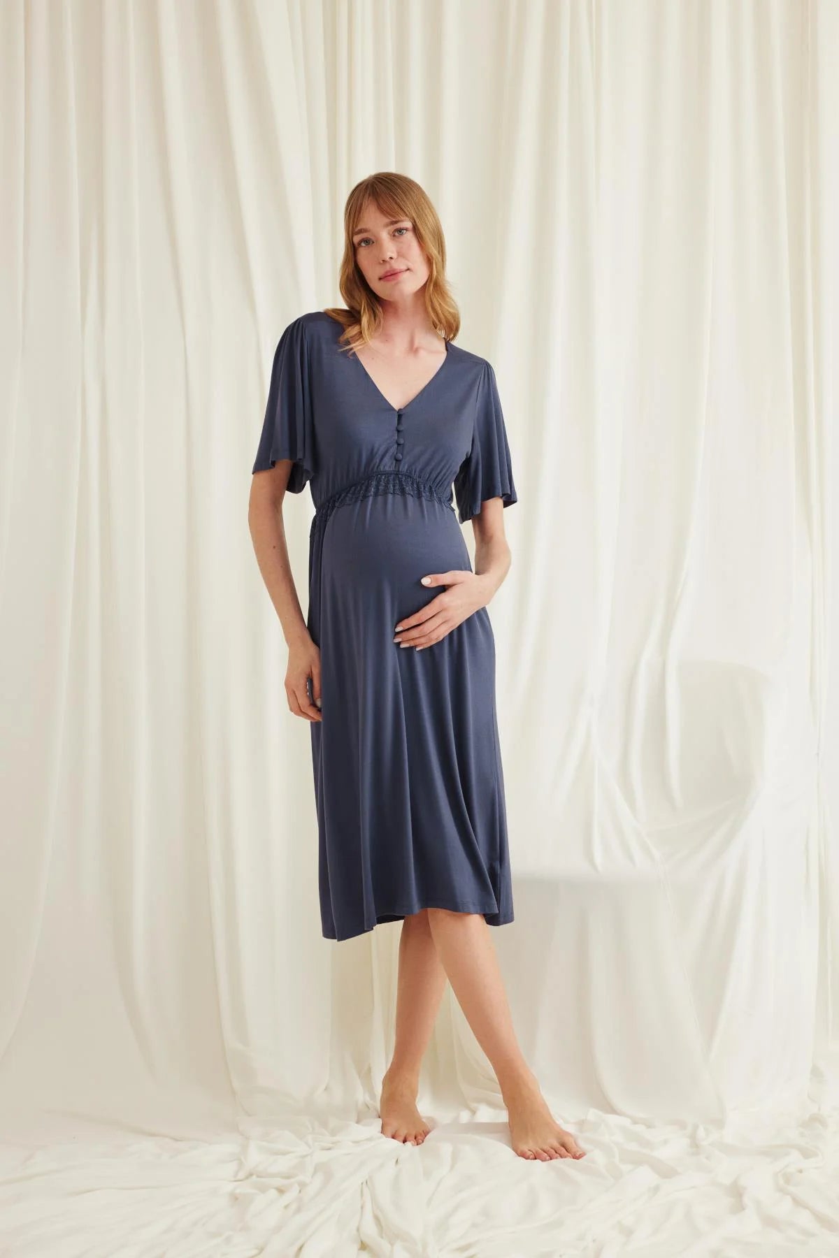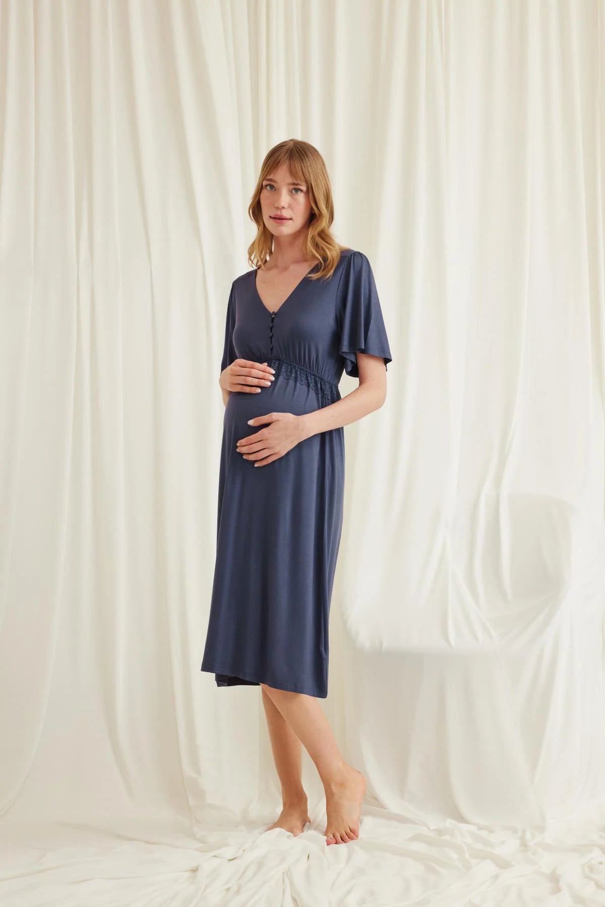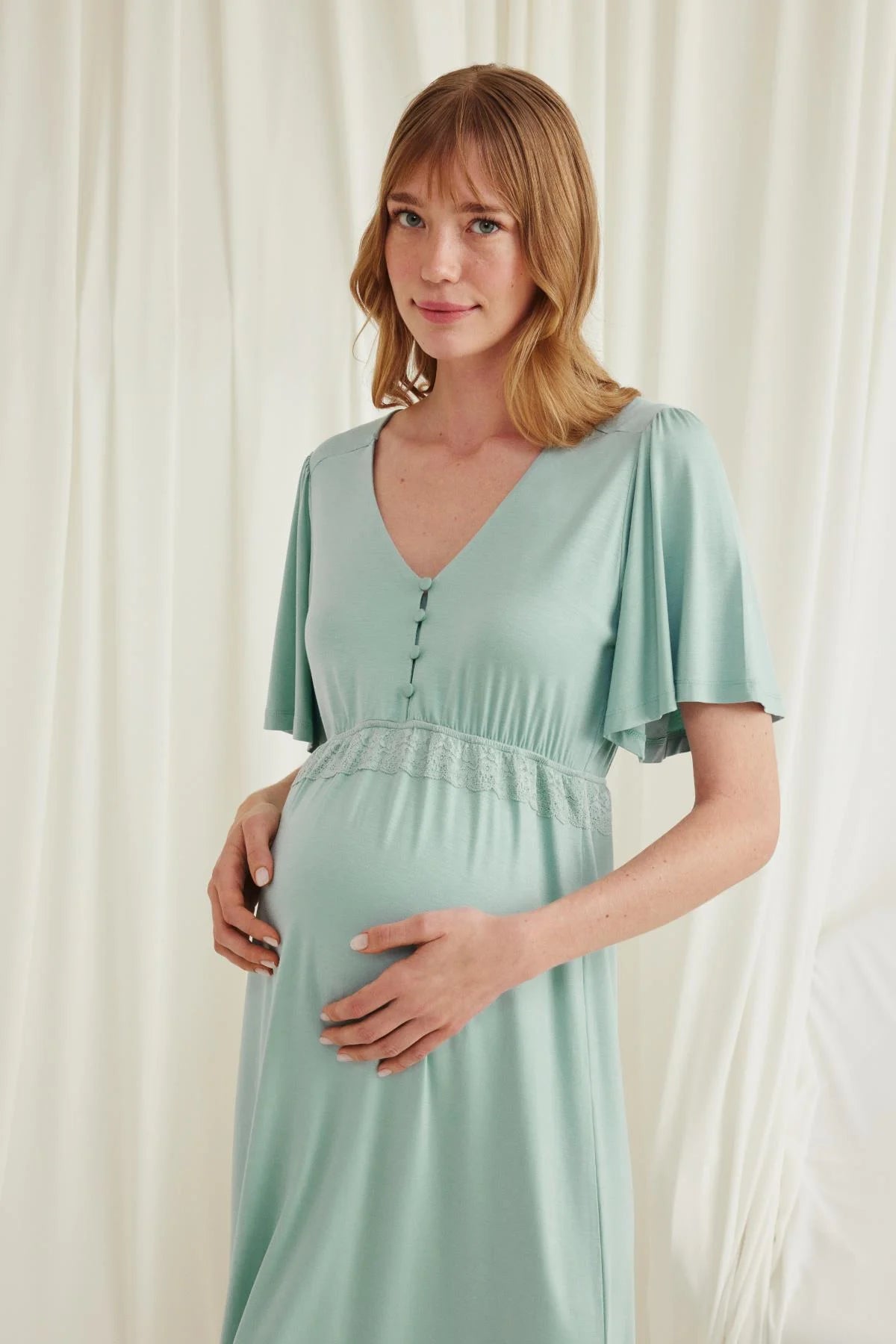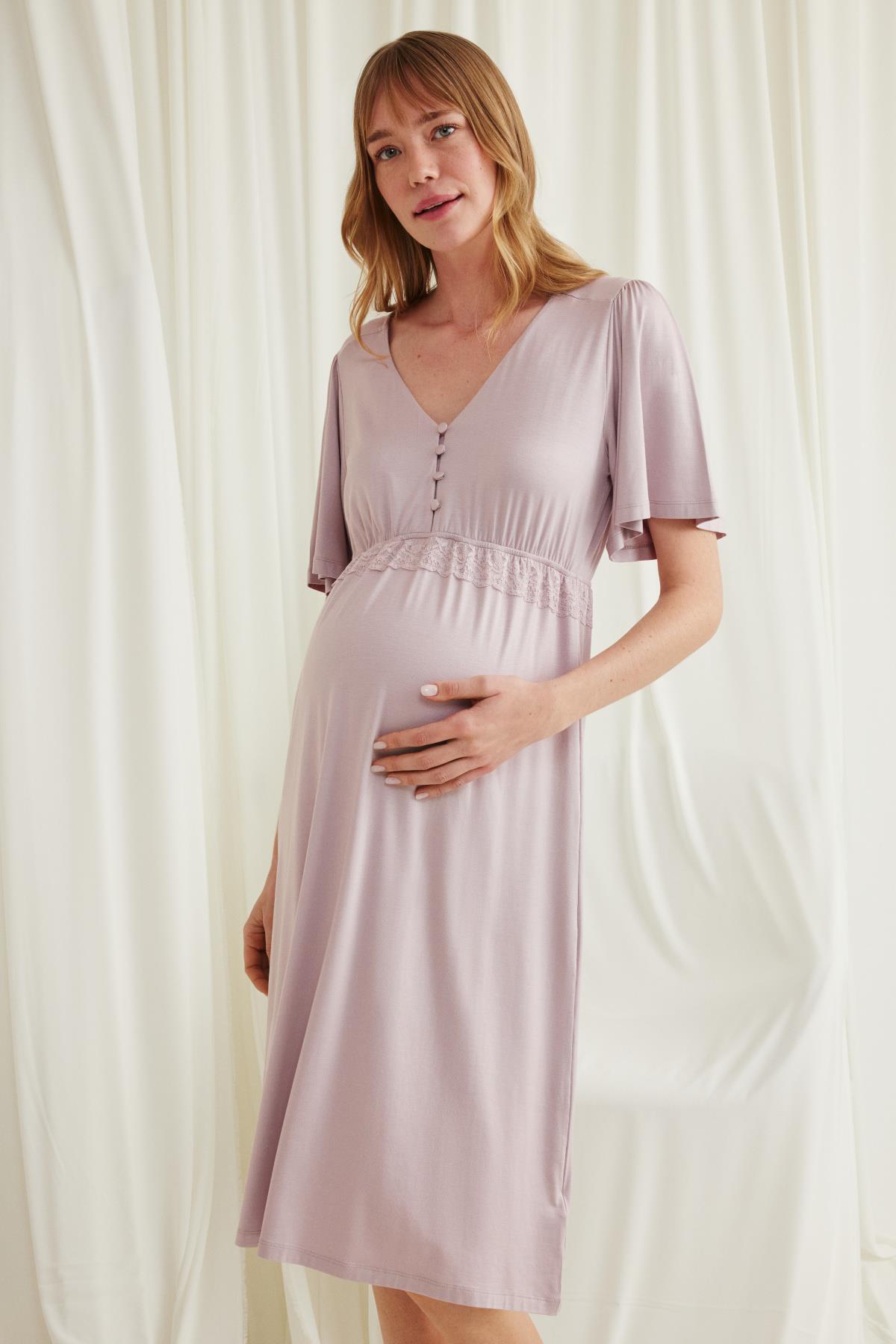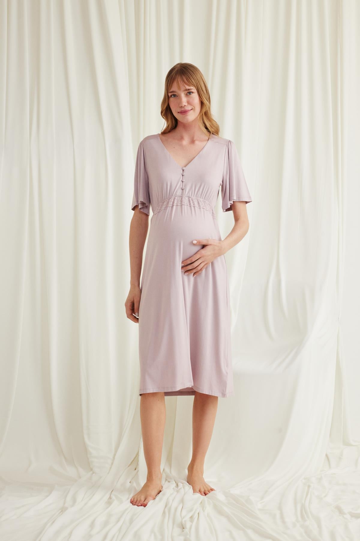 Stay stylish and cozy during pregnancy and postpartum with this soft, breathable maternity nightgown. The front button design makes nursing easy, while the delicate lace detailing adds a feminine touch. Perfect for pregnancy, nursing, or home lounging, its relaxed fit adapts to your changing body for all-night comfort.