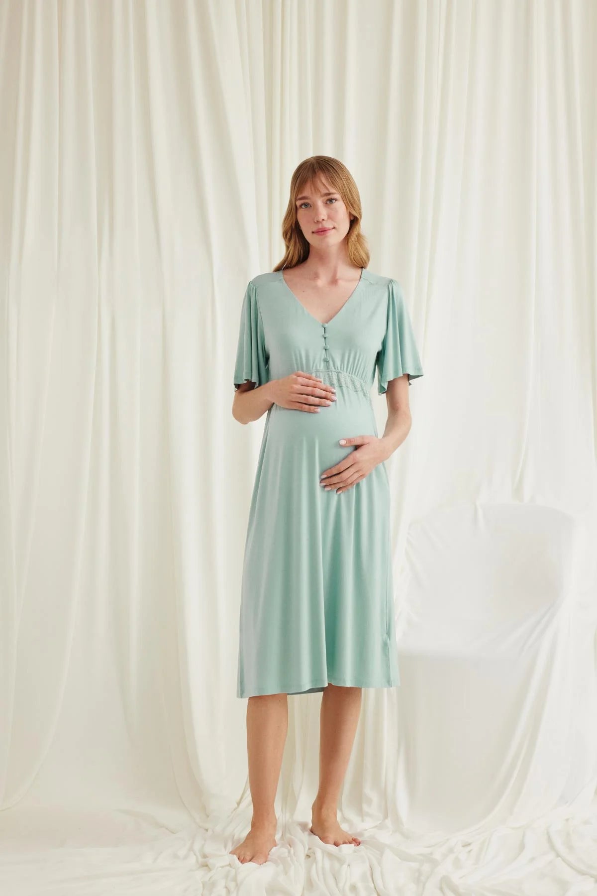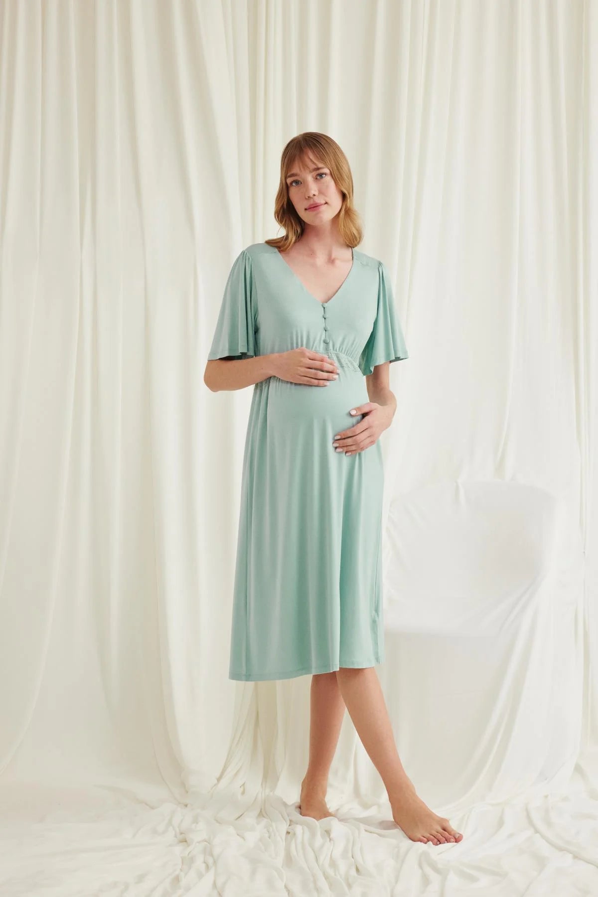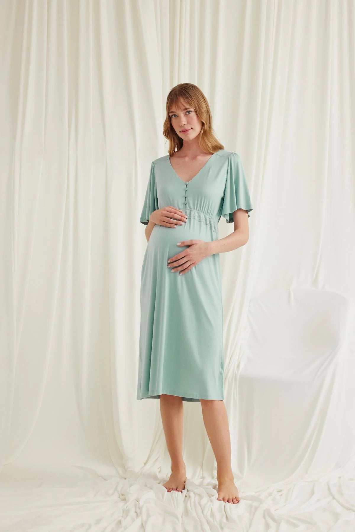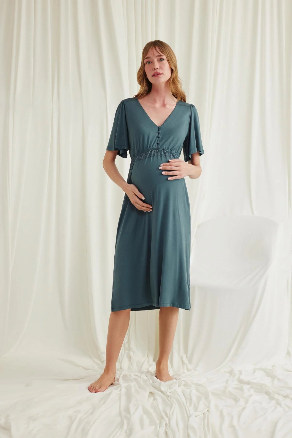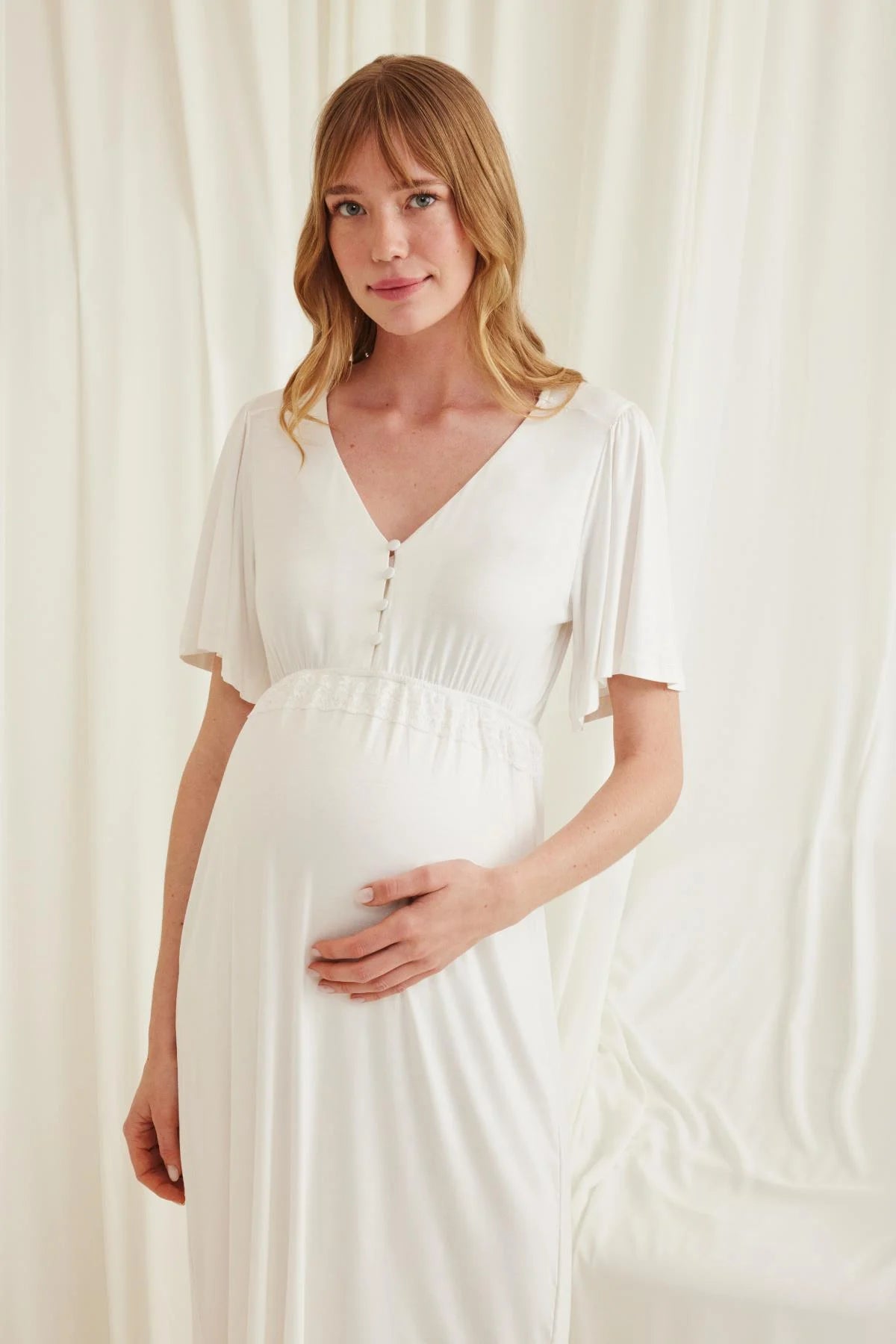 Stay stylish and cozy during pregnancy and postpartum with this soft, breathable maternity nightgown. The front button design makes nursing easy, while the delicate lace detailing adds a feminine touch. Perfect for pregnancy, nursing, or home lounging, its relaxed fit adapts to your changing body for all-night comfort.