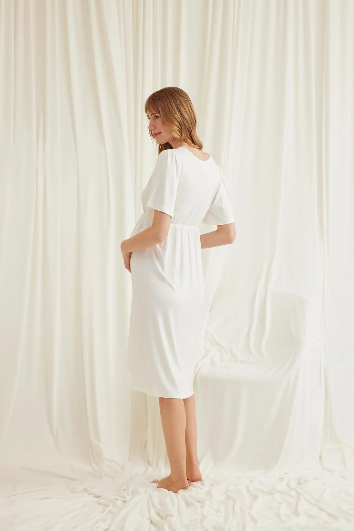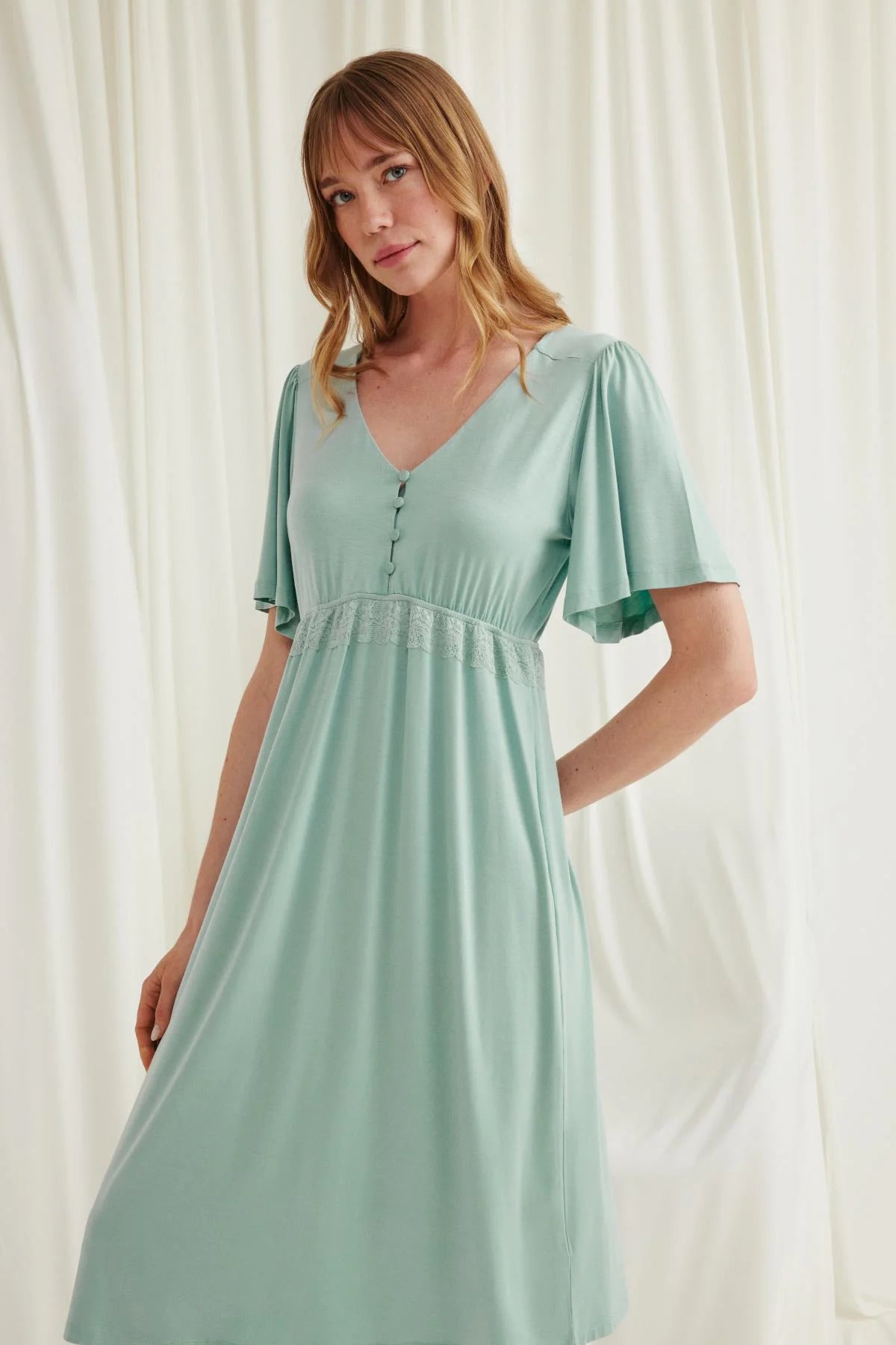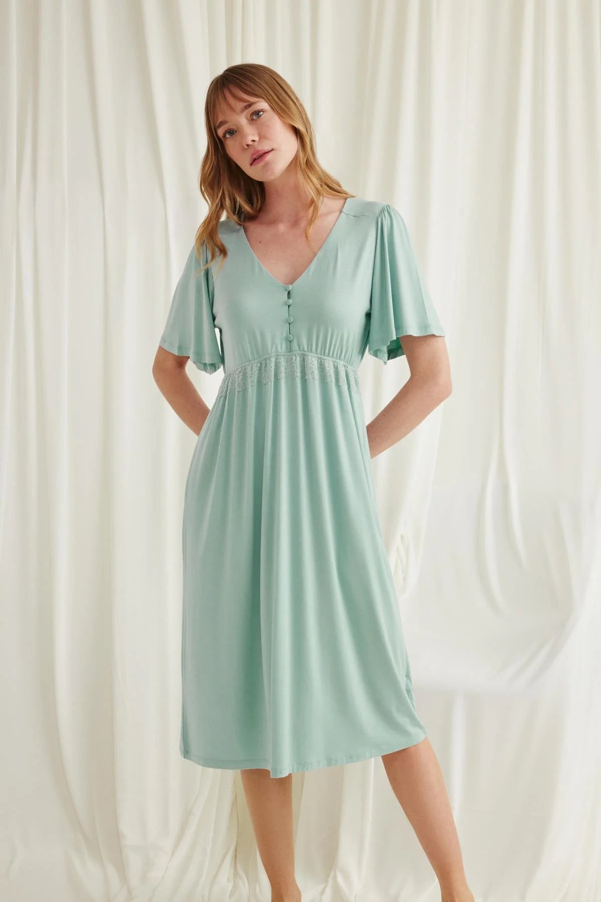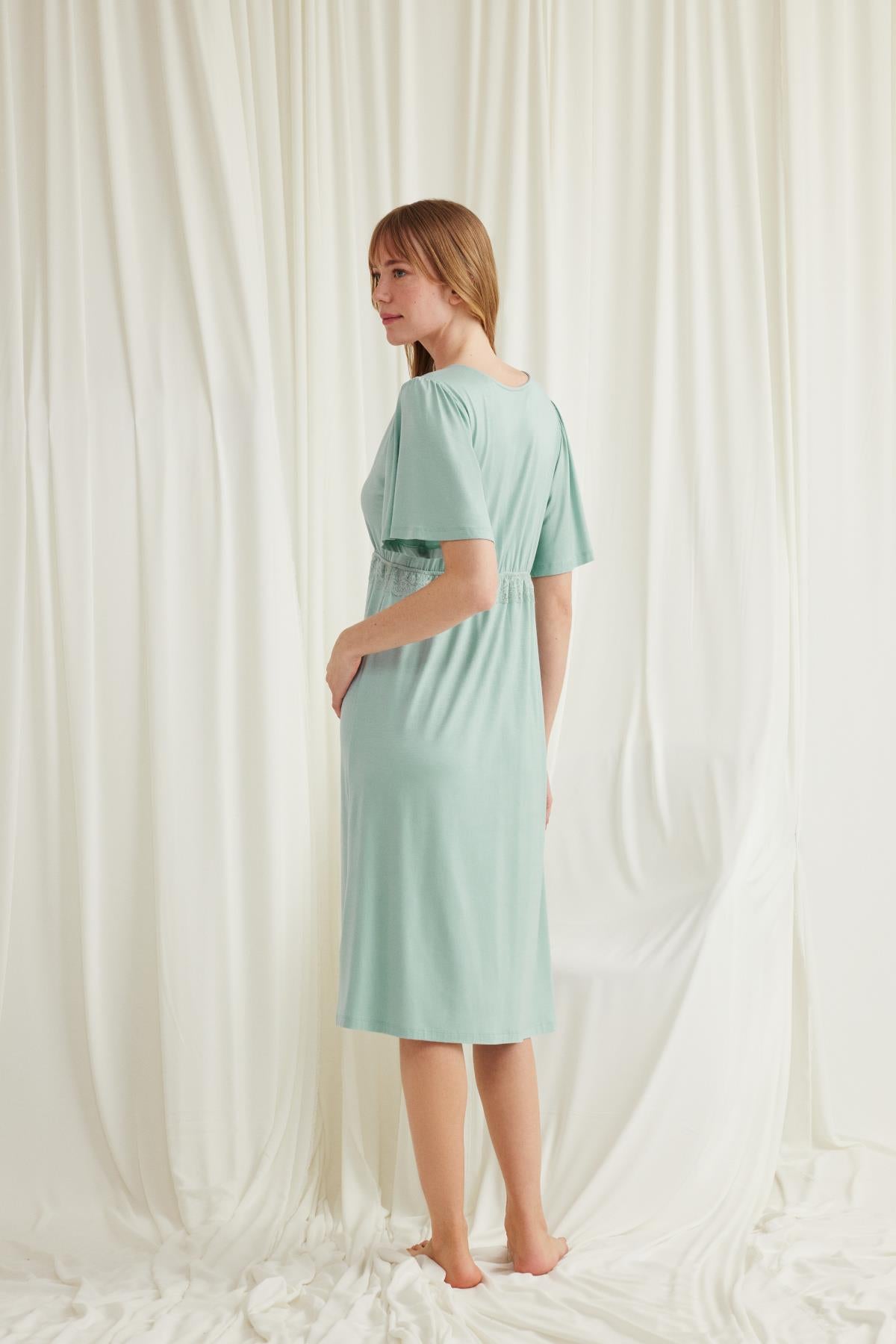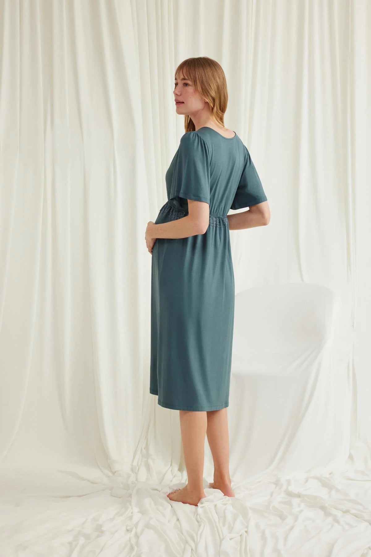 Stay stylish and cozy during pregnancy and postpartum with this soft, breathable maternity nightgown. The front button design makes nursing easy, while the delicate lace detailing adds a feminine touch. Perfect for pregnancy, nursing, or home lounging, its relaxed fit adapts to your changing body for all-night comfort.