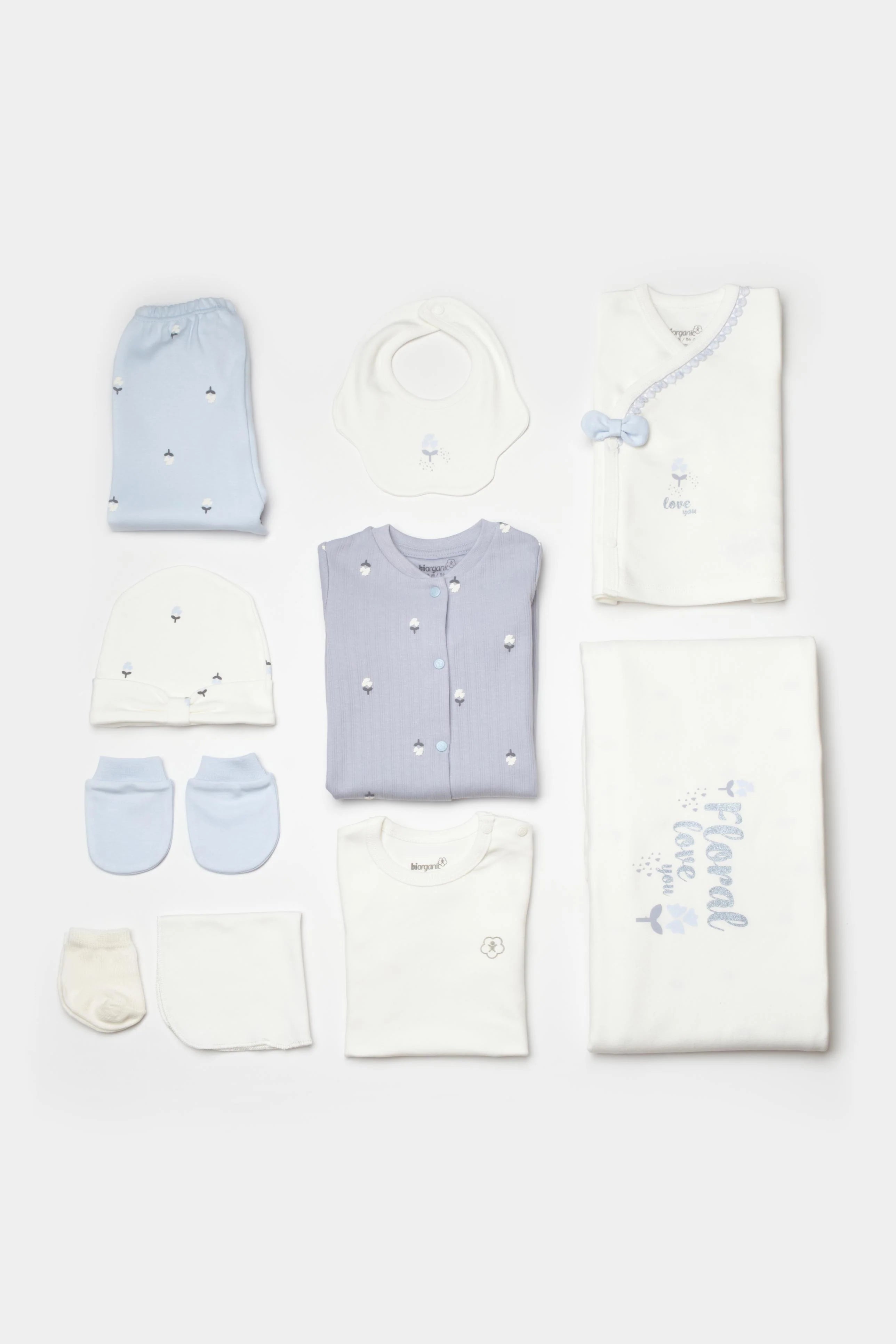 This 10-piece set, carefully prepared for healthy and safe touches from your baby's first days, is made of 100% organic cotton.